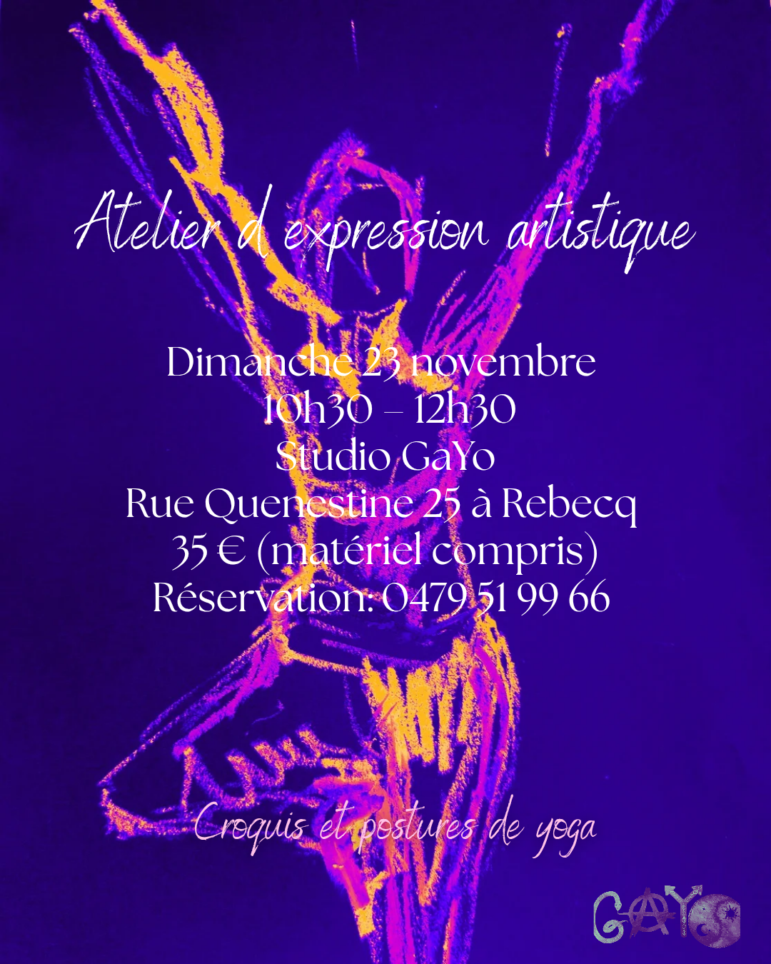 🗓 Dimanche 23 novembre | 10h30 – 12h30📍 Studio GaYo💰 35 € (matériel compris)📞Réservation au 0479 51 99 66