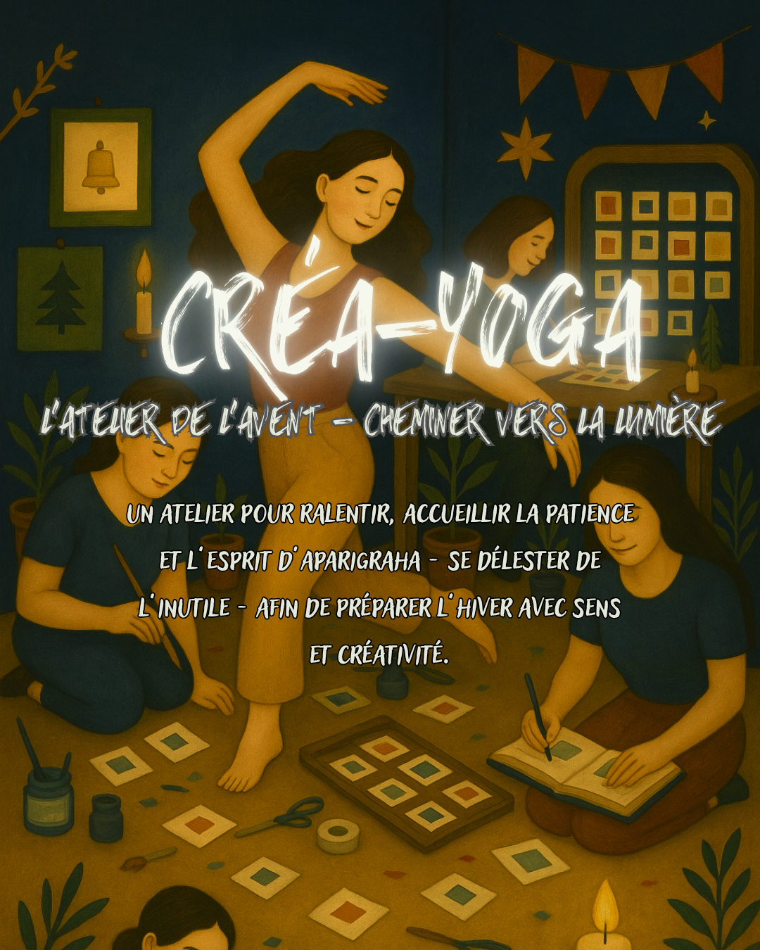 Cet atelier Créa-Yoga s'inspire de l'esprit de l'Avent et du principe d'Aparigraha, le non-attachement, la sobriété joyeuse.